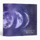 A trendy bohemian personalized school or office binder with a lunar moon phases on a starry night sky design.