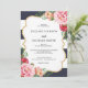 Bohemian navy blush pink floral peonies wedding invitation