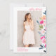 Bohemian pink watercolor flowers graduation party invitation. Featuring delicate watercolor florals and romantic details in pink, red, orange, eucalyptus green and indigo blue and an elegant brush script. Add your photo at the back.