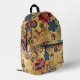 Each element of the pattern is a testament to artistic expression, with deep reds, bright blues, and touches of golden hues that suggest a timeless elegance. From the delicate outlines of petals and leaves to the bold, sweeping curves of the paisley, this backpack is not just a carryall—it's a piece of wearable art.