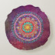 Round bohemian style cushion with a mandala design