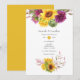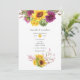 Rustic boho sunflowers and dahlias wedding invitation in hues of burgundy and sun colours.