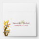 Cute, colourful trees with decorative swirls & spirals on tree branches + olive green coloured liner designed on custom Wedding Invitation Envelopes. All the sample text can be fully customized with your own wording. Feel free to change the fonts, sizes & colours of the text as well. ((You can find the matching wedding essentials & favours in this store, Bridal Heaven. Contact ujean4791@gmail.com for custom work and/or coordinating wedding stationery.))