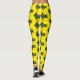 Colourful bohemian design turtle leggings with multicolored turtles against a yellow background.