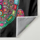 Wall tapestry with image of colourful bohemian turtle against a black background.