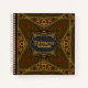 Designer custom stationery range - notebooks that would suit a variety of possibilities : Stylish unique and alternative design in vintage gold and brown. Looks like tapestry with Arabesque flavours. Personalize this notebook cover with name & text. Delete if no text is preferred. Choose from a large range of paper inserts - ♥ webgrrl.art