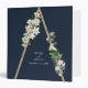 A beautiful bohemian style rustic wood pyramid with white watercolor florals cascading on the side and a blue background. A unique design that uses vintage white watercolor botanicals on a bohemian triangle structure. A charming white floral design with rustic and geometric features and elegant script typography. An elegant wedding album design with modern elements. Matching wedding invitations and other stationery items are also available.