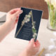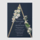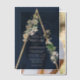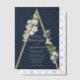 A beautiful bohemian style rustic wood pyramid with white watercolor florals cascading on the side and a blue background. A unique design that uses vintage white watercolor botanicals on a bohemian triangle structure. A charming white floral design with rustic and geometric features and elegant script typography. An elegant wedding invitation design with modern elements. Matching wedding stationery items and other wedding invite formats are also available.