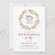 elegant script and bohemian wreath foliage housewarming invitation card. The text and colours can be edited.