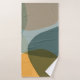 This stylish abstract geometric design features boho organic shapes in an earth tone palette of brown, teal blue, and mustard yellow.