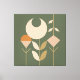 A boho inspired design of simples shapes in rustic colours of green, tan, beige, brown, and orange.