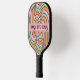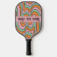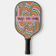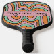 Personalized Boho 70's style abstract pink orange green wavy lines pickle ball paddle, with retro flourished typography. A 60's and 70's style vibe. Add your name,