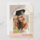 This cute boho graduation invitation features an arch shaped photo on a cream background with abstract shapes in brown and pink, and faux gold lines. The reverse side features a light pink background with doodle lines in faux gold. Personalize it for your needs. You can find matching products at my store.
