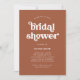 This simple and boho bridal shower invitation features white, retro typography on a neutral terracotta background.