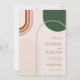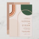 Faire-part de mariage boho moderne aux formes arc en terre cuite, rouille, orange brûlée, vert foncé, tons émeraude. Collection : https://www.zazzle.com/collections/boho_arch_abstract_wedding_collection-119061662657911589