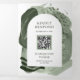 Boho Arch Sage Green Brush Strokes QR Code Wedding Tri-Fold Invitation