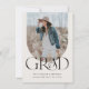 Boho Arch Simple Three Photo Budget Graduation Invitation features one photo on the front and two photos on the back along with graduation invitation details.