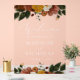Panneau d'accueil mariage rustique avec fleurs d'aquarelle et verdure dans des couleurs automnales muettes d'ivoire, orange, or moutarde, vert olive, rose poussiéreux, et marron avec un arrière - plan acrylique transparent. "Bienvenue" est affiché dans un script de calligraphie moderne avec vos noms et la date mariage ci-dessous. Conçu pour coordonner avec notre collection Boho Autumn Floral mariage.