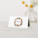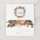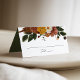 Rustic autumn floral place card featuring a top border of watercolor flowers and foliage in earth tone shades of ivory, marigold, burgundy, dusty rose, and olive green. Space is provided below for the guest's name and table number. The card reverses do display your initials and wedding date displayed with a matching square floral frame. The inside of the folded wedding place card features a rich olive green watercolor design. Designed to coordinate with our Boho Autumn Floral wedding collection.