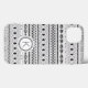 A black and white modern tribal stripe pattern decorates this iphone case. Personalize it with your monogram. Designed for you by Blackberry Boulevard.