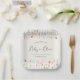 An elegant light cream baby shower paper plate featuring boho watercolors of delicate wildflowers and "Baby in Bloom" in a stylish contemporary script. Personalize with the name of the mommy-to-be and shower date.