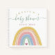 Sweet boho pastel coloured rainbow with yellow, peach, pink, blue and green. Back features smiling sun and hearts. Easy to customize for your boho chic baby shower. This keepsake is the perfect gift for the parents to be!
