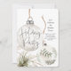 A gathering of boho baubles headlines this boho style holiday party invite.