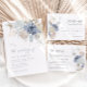 Boho Rustic Élégant Sur La Plage Romantique Bleu Simple Détails Mariage Carte De Boîtier. De style bohème, des coquillages de bord de mer arrangés minimalistes carte de détails élégant et simple boho bleu poussiéreux et coquille crème et étoiles de mer en aquarelle imprimée à la main. La couleur arrière - plan bleu romantique est magnifique pour les mariages boho et les mariages sur la plage. Invitations modifiables pour les mariages du printemps, de l'été, de l'automne et de l'hiver.