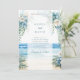 The back of the invitation showcases a soothing blue-green wash, enhancing the coastal charm of the design. With its perfect blend of bohemian elegance and seaside tranquillity, this invitation sets the tone for a magical wedding by the ocean. The customizable text ensures that every detail of your special day is beautifully presented in a harmonious, sophisticated style.