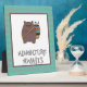 Adorable digital art features Boho Bear with his colourful quiver of arrows, "Adventure Awaits" text and distressed teal harlequin background