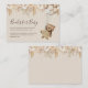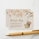 Bohemian bear baby shower invitations featuring a light brown background, a vintage watercolor baby bear, balloons, rustic boho pampas grass & florals, plus a modern 'books for baby' template that is easy to personalize.