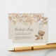 Bohemian bear baby shower invitations featuring a light brown background, a vintage watercolor boy baby bear, balloons, rustic boho pampas grass & florals, plus a modern 'books for baby' template that is easy to personalize.