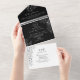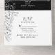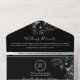Embark on a journey of timeless elegance with our all-in-one black and white wedding invitation, blending classic sophistication with modern bohemian flair. Adorned with vintage silver floral lace and the couple's monogram, this invitation exudes refined charm. Your picture graces the front, while inside, discover the details of our celebration and an RSVP, completing this invitation to a day as unforgettable as your love.