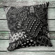 Boho black and white decorative fish pattern throw pillow. By Julie Nicholls©.