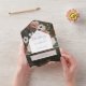 AVAILABLE WITH OR WITHOUT A QR CODE OR WITH OR WITHOUT DINNER SELECTION OPTIONS. This design features bouquet of burgundy marsala, pink blush, and white flowers on a soft charcoal black background that has been distressed with champagne gold. Add a QR code to your invitation so that gusts can quickly access your wedding Website for details, directions, menu options, and more, or add your gift registry Web URL. Personalized All-In-One invitations are a unique combination of both a beautifully printed custom invitation with an easy to tear off perforated RSVP postcard. And they are so easy to use! You simply fold, then seal the back flap with the three included clear stickers, and mail. And when your guests receive your custom invite, they just tear the perforated RSVP Card off and drop it back in the mail to you!
