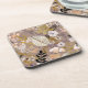 Boho Black White Gold Peach Line Drawn Leaf Floral Coaster
