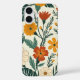 Golden, cream, and russet flowers with dark green foliage on an ivory background creates a beautiful abstract boho floral design.