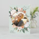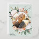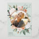 L'élégant faire-part de graduation de photo florale comprend une photo ronde encadrée de fleurs d'aquarelle et de feuillage dans des tons de pêche inspirés du désert de sauge, blanc, ivoire et vert sauge. La garniture en feuille d'or rose complète le look. Personnalisez avec le nom de votre diplômé, l'année de classe et l'école. Ajoutez un message personnel à l'arrière, ainsi qu'une photo supplémentaire.