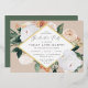 Elegant floral graduation party invitation features a diamond shaped frame of watercolor flowers and foliage in boho desert inspired shades of peach, white, ivory, and sage green, and finished with gold foil trim. Personalize with your graduation party details.