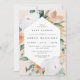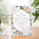 Elegant floral gender neutral baby shower invitation features an elongated hexagonal frame of watercolor flowers and foliage in boho desert inspired shades of peach, white, ivory, and sage green. Personalize with your baby shower details in modern lettering.