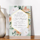Elegant floral bat mitzvah invitation features an elongated hexagonal frame of watercolor flowers and foliage in boho desert inspired shades of peach, white, ivory, and sage green, and finished with gold foil trim. Personalize with your temple or synagogue ceremony and party details in modern lettering.