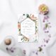 Elegant floral confirmation invitation features an elongated hexagonal frame of watercolor flowers and foliage in boho desert inspired shades of peach, white, ivory, and sage green, and finished with gold foil trim. Personalize with your church ceremony and confirmation party details in modern lettering.