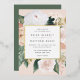 Elegant floral wedding invitation features your wedding details in modern lettering, set in a square frame of pastel watercolor flowers and botanical foliage in desert inspired earth tone shades of peach, sage green, white and ivory. Gold foil trim completes the look for a luxe touch.