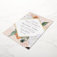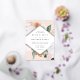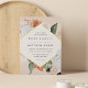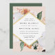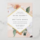 Elegant floral wedding invitation features your wedding details in modern lettering, set in a geometric diamond shaped frame of pastel watercolor flowers and botanical foliage in desert inspired earth tone shades of peach, sage green, white and ivory. Gold foil trim completes the look for a luxe touch.