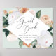 Designed to match our Boho Blooms wedding collection, this elegant floral sign invites wedding guests to sign your guestbook. "Guestbook" appears in calligraphy script with your custom text; shown with "please share your wishes for the new Mr. and Mrs. [name]", framed by a geometric border of pastel watercolor flowers and botanical foliage in desert inspired earth tone shades of peach, sage green, white and ivory.