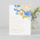Invite guests to your event with this customizable gold foil baby shower invitation. It features watercolor bouquet of blue and white hydrangeas with floral and greenery accents. Personalize this hydrangea baby shower invitation by adding name, time, date and other event details. This botanical baby shower invitation is perfect for spring and winter baby showers.