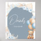 Boho Blue Bear Balloon Baby Shower Drinks Poster