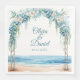 Add a touch of coastal elegance to your wedding table with our Boho Blue Floral Arch Beach Wedding Paper Dinner Napkins. Featuring a stunning watercolor design, these napkins showcase a serene ocean view framed by a delicate floral arch in soft blue and white tones, complemented by lush green leaves. The perfect blend of bohemian charm and seaside romance, these napkins beautifully enhance any beach or destination wedding reception.
