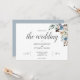 Boho wedding invitation features dusty blue and neutral beige flowers with dried leaves.