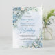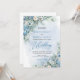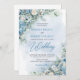 Boho blue hydrangea and cream roses eucalyptus wedding invitation,